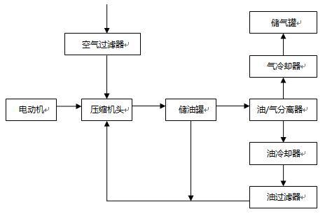 螺桿式空壓機(jī)整個(gè)工作原理流程圖如下: