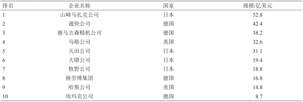 表1 2019年全球十大數(shù)控機(jī)床制造企業(yè)