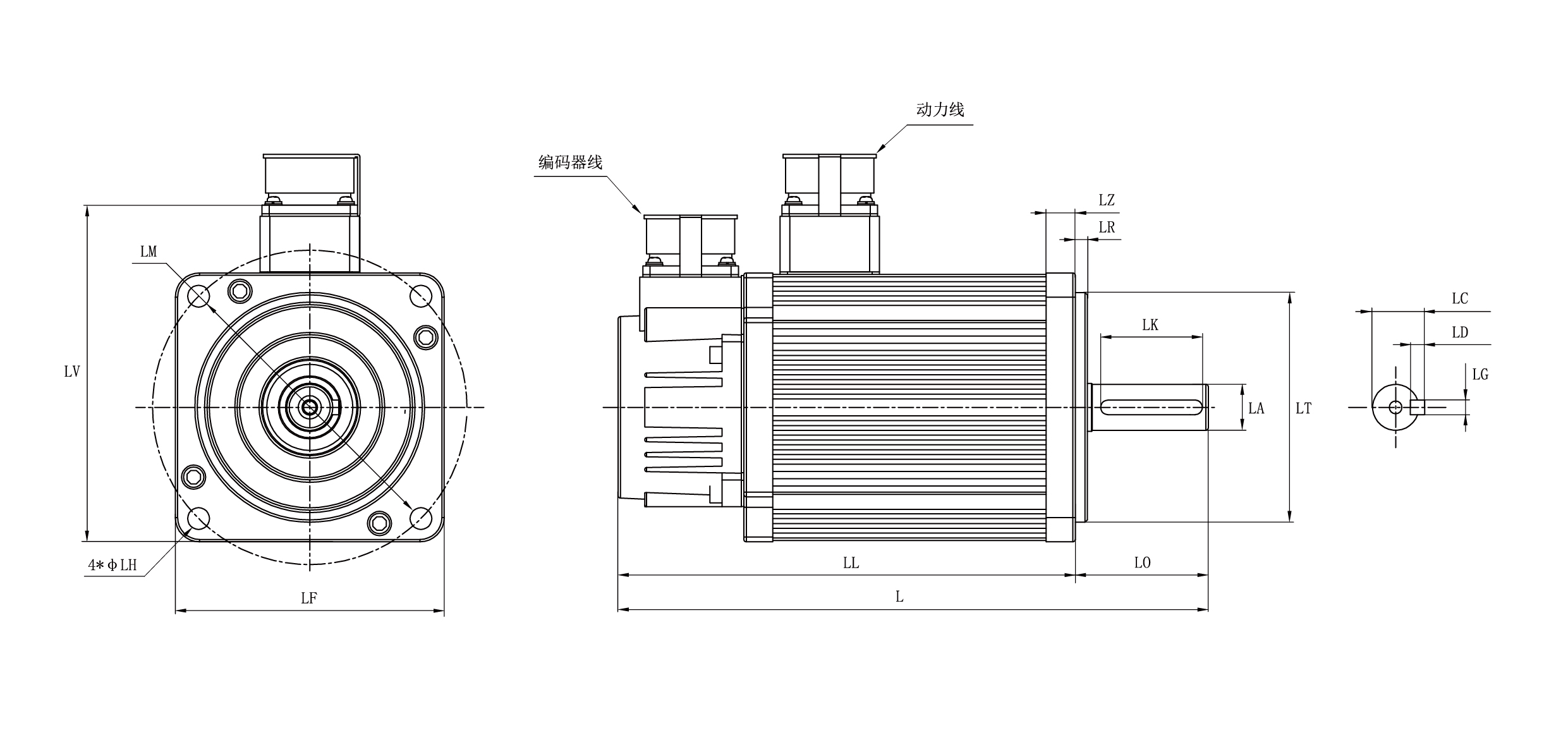 功率 電機(jī)型號 LF L LL LO LZ LR LA LT LM LH LV LK LC LD LG 1200W HSM1-110M2230212D5 110 244 189 55 12 5 19 95 130 9 129.5 42 21.5 6 6 1500W HSM1-110M2230215D5 110 259 204 55 12 5 19 95 130 9 129.5 42 21.5 6 6