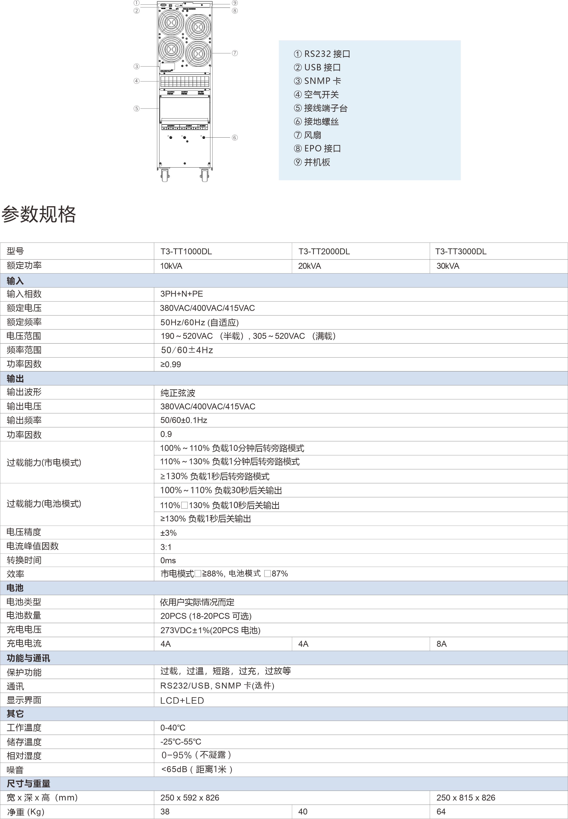 T3 系列在線式高頻UPS 10kVA-30kVA(3/3)T3 系列在線高頻智能化 UPS,采用雙變換設(shè)計、DSP 數(shù)字控制,集成輸入功率因數(shù)校正技術(shù),穩(wěn)定高效,配置靈活,全方位滿足設(shè)備需求,實現(xiàn)電源永不間斷。