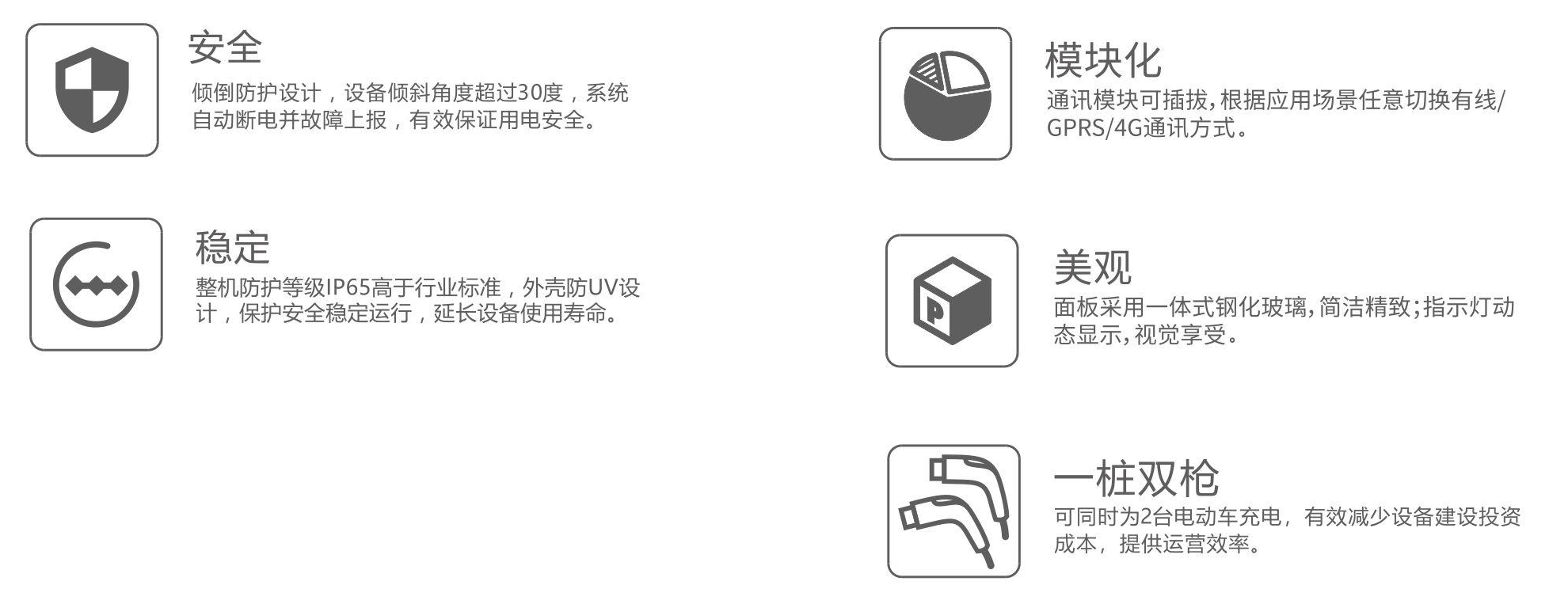 單相雙槍交流樁主要提供給地產(chǎn)物業(yè)或充電運營商等客戶,用于建設(shè)對外開放運營的充電站。充電樁集人機(jī)交互、充電控制、安全防護(hù)、計量計費、數(shù)據(jù)通信功能于一體,安裝方便、部署快捷、是用于停車場目的地充電的理想產(chǎn)品.