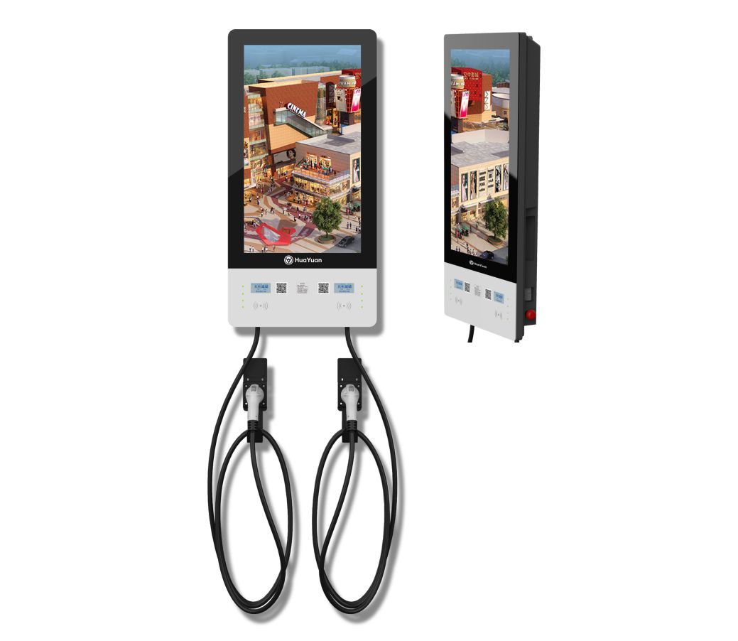 廣告機充電樁華遠(yuǎn)智能充電樁集成戶內(nèi)高清顯示屏,將汽車充電盒廣告...