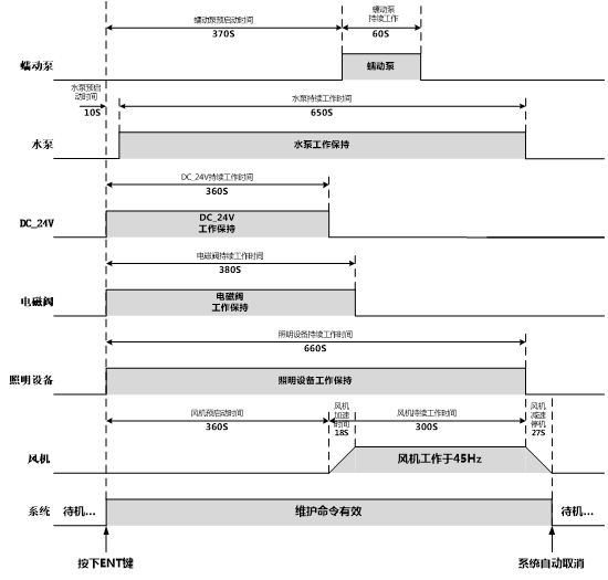 (6) 第660秒,關(guān)閉照明,水泵,以及風(fēng)機(jī);