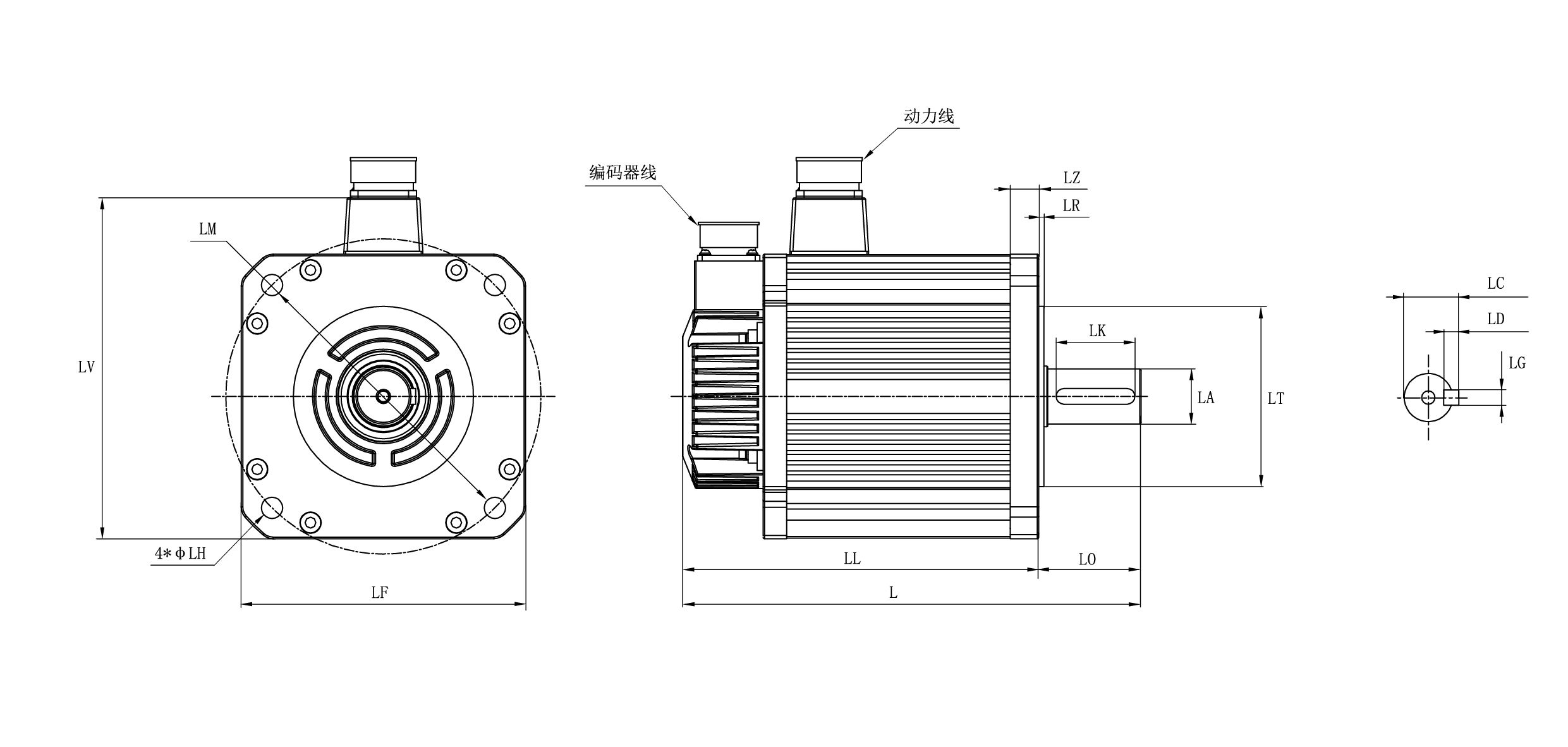 功率 電機型號 LF L LL LO LZ LR LA LT LM LH LV LK LC LD LG 3000W HSM1-180H381523D5 180 297 232 65 18 3.2 35 114.3 200 13.5 193 51 38 10 10 4500W HSM1-180M3820245D5 180 308 243 65 18 3.2 35 114.3 200 13.5 193 51 38 10 10 5500W HSM1-180H3815255D5 180 357 292 65 18 3.2 35 114.3 200 13.5 193 51 38 10 10 7500W HSM1-180H3815275D5 180 411 346 65 18 3.2 35 114.3 200 13.5 193 51 38 10 10