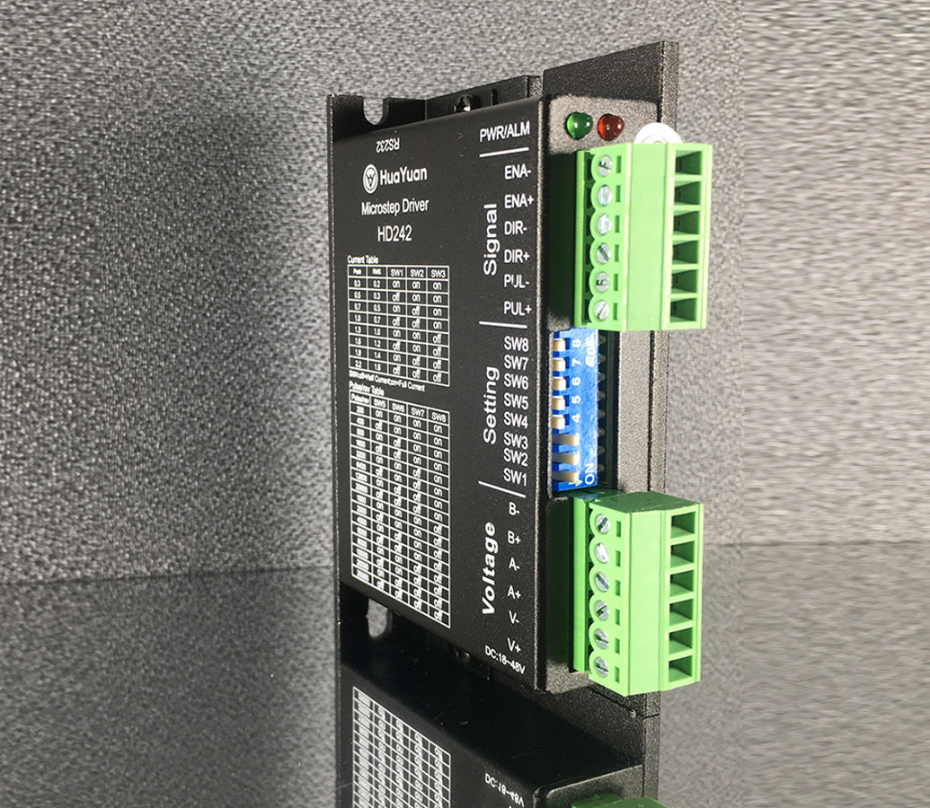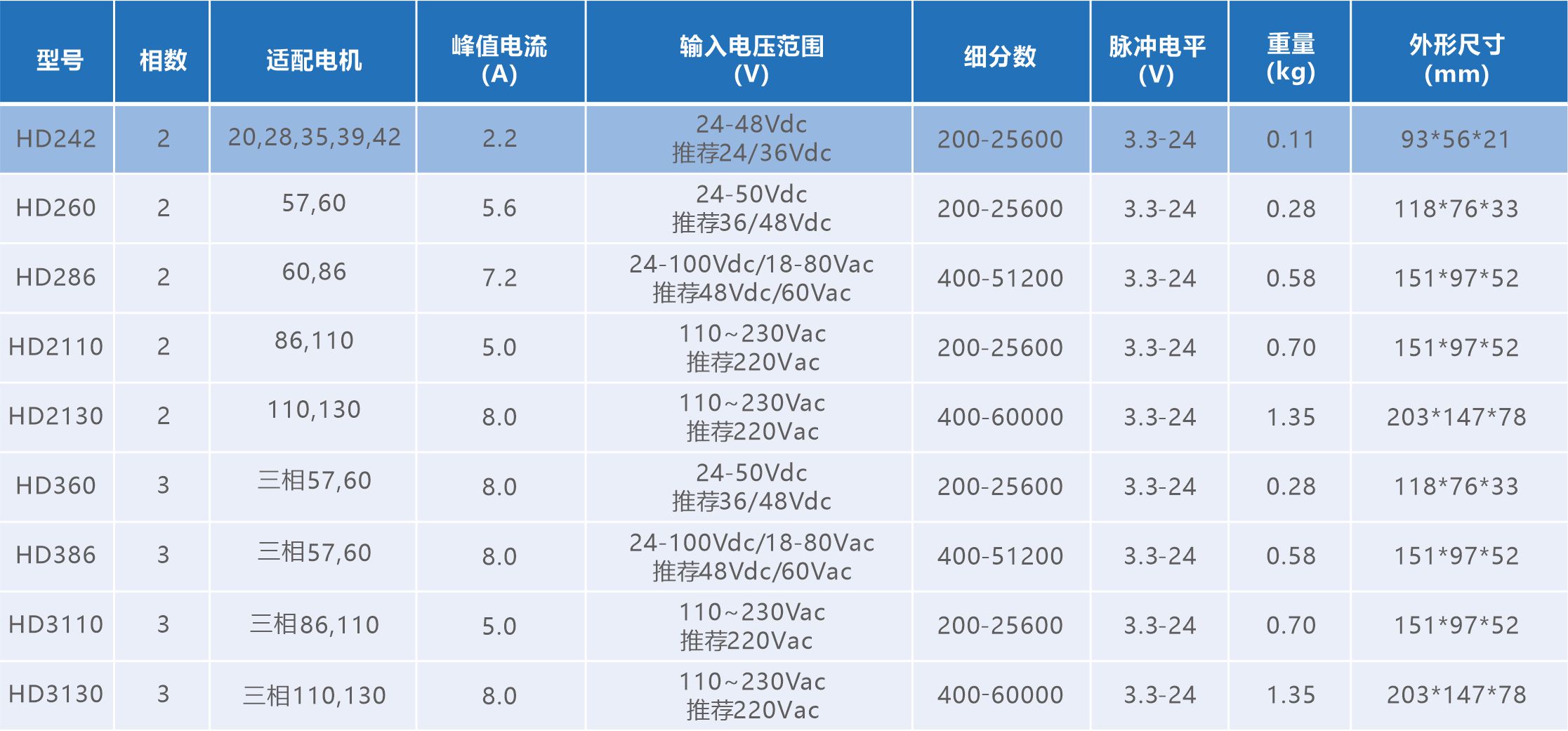 HD242 開環(huán)步進(jìn)驅(qū)動器HD242步進(jìn)驅(qū)動器,基于32 位 DSP 處理芯片的平臺,采用內(nèi)部 PID 電流控制算法 設(shè)計,具有優(yōu)異的性能表現(xiàn)。內(nèi)置微細(xì)分技術(shù)使得 步進(jìn)驅(qū)動器具有低噪音、低振動、 低發(fā)熱和高速大力矩輸出的特點,能夠很好的適應(yīng)于步進(jìn)電機的大部分運用場合。 HD242可通過撥碼開關(guān)選擇運行電流和細(xì)分,有 16 種細(xì)分、8 種電流選擇,具有過壓, 欠壓,過電流流保護,其輸入輸出控制信號均采用光電隔離。