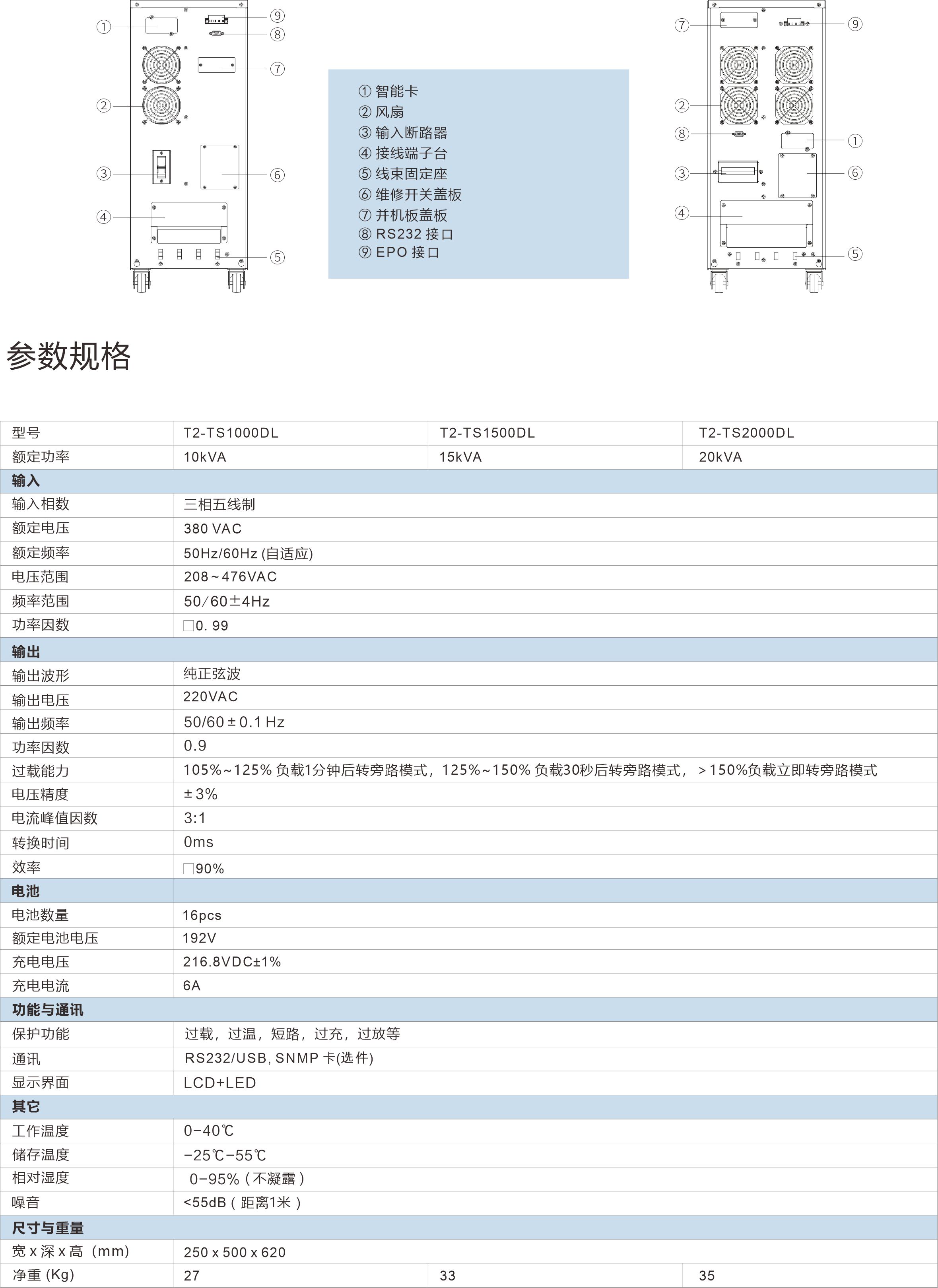 T2 系列在線(xiàn)式高頻UPS 10kVA-20kVAT2 系列在線(xiàn)高頻智能化 UPS,采用雙變換設(shè)計(jì)、DSP 數(shù)字控制,集成輸入功率因數(shù)校正技術(shù),保證更加優(yōu)良的輸出性能,滿(mǎn)足設(shè)備需求,LCD+LED 可視化界面方便快捷掌控UPS 和設(shè)備工作信息。