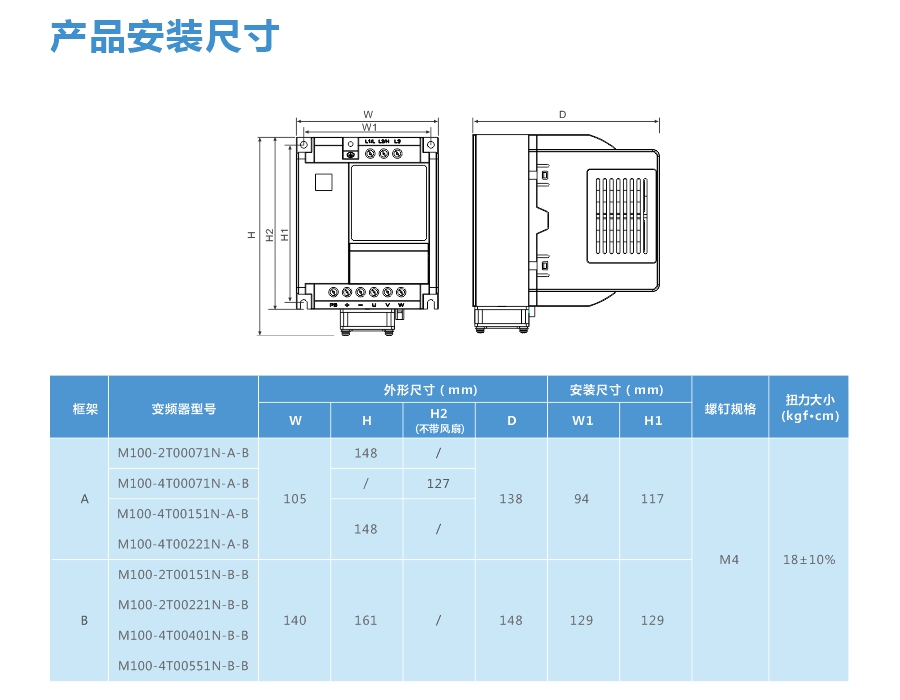 M100系列防護(hù)型開環(huán)矢量變頻器M100系列防護(hù)型開環(huán)矢量變頻器造型上延續(xù)M1系列家族的風(fēng)格同,控制性能上支持V/F控制、開環(huán)矢量控制、M100E支持同步機(jī)使用。 M100系列可應(yīng)用于食品包裝、木工雕刻、自動化流水線、陶瓷、紡織、工業(yè)洗衣機(jī)、金屬加工、風(fēng)機(jī)水泵等行業(yè),防護(hù)等級高、保護(hù)功能齊全、性能卓越、調(diào)試簡單。